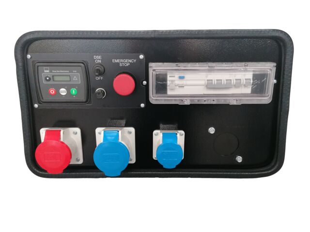 - DSE 3110 module (displays warnings, shutdowns, and engine status information like high temperature, low oil pressure, low fuel level, volts and frequency, operating hours, battery voltage monitoring)