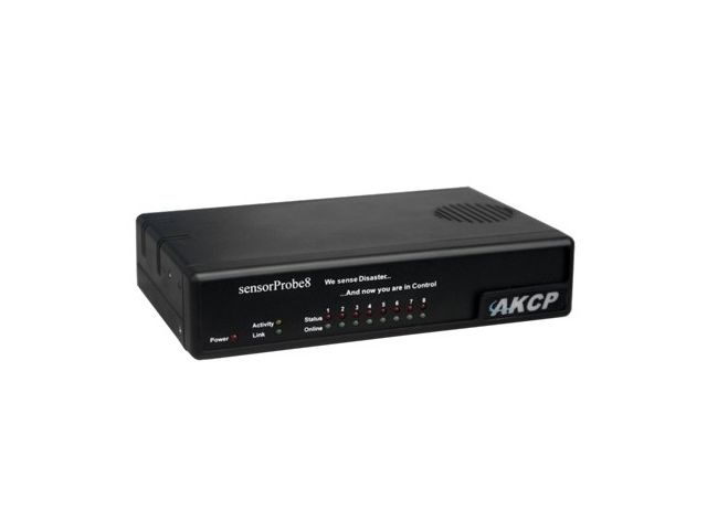 It has 8 auto-sense intelligent sensor ports which work with a wide range of AKCP intelligent sensors. It can use any combination of sensors to monitor temperature, humidity, water leakage, airflow, security and even control relays.