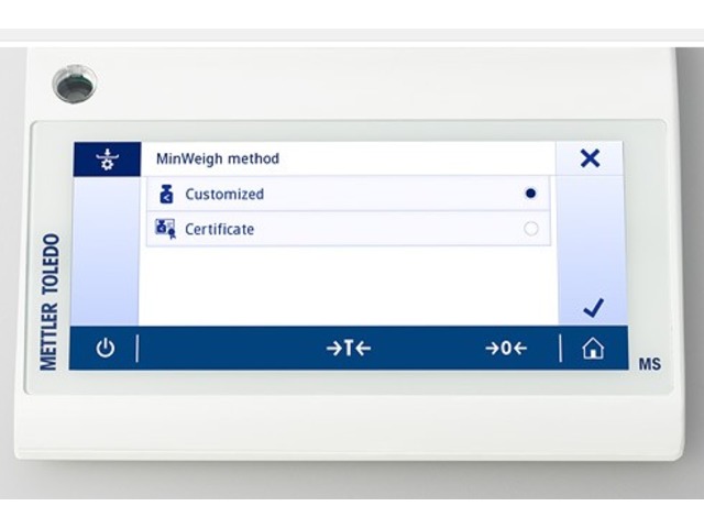 The display digits turn red if the net sample is below a pre-programmed minimum value. Selection between a customized or certficated MinWeigh method is possible.