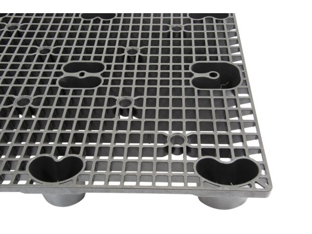 As nestability offers considerable savings in transport and storage and not all intensive used pallets need to be rackable, we developed a specific solution for order picking and deliveries to shops. This multiway and nestable pallet has 9 feet, is sustainable and is suitable for export, retail or pooling. It also has rounded and reinforced feet to reduce breakage due to fork impact.