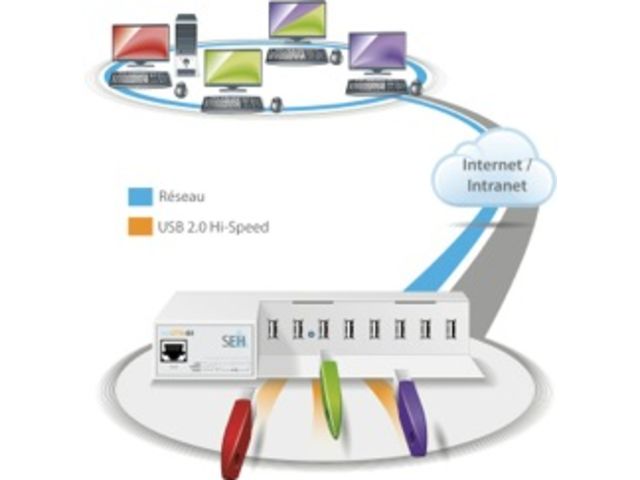 - Virtual USB cable extension via the network for the flexible and independent use of up to eight USB dongles
