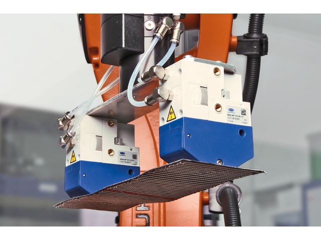 Handling materials that are difficult to grip using vacuum such as composite textiles, fleece, filter materials, insulation and foam materials etc.