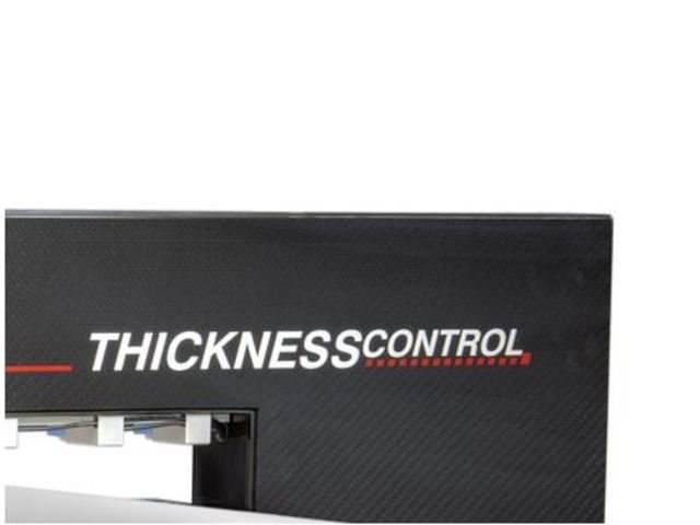 thicknessCONTROL MTS 8202.LLT (CFC) measures strip and board thickness of 50mm and more. The carbon reinforced plastic design (CFC) results in a wide bandwidth of applications: When compared to the metal version, the maximum bandwidth has been tripled from 500 to 1500mm. The laser profile sensors for thickness measurements are located at the tips of the C-frame. The robust construction ensures exact measurement results in the micrometre range. Laser profile sensors use a measurement line which offers significant benefits for tilted and rippled metal strips in comparison to point-type lasers that cannot recognize tilts.