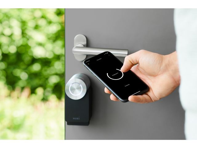 Nuki Smart Lock 3.0 Pro: Our electronic door lock with integrated remote access and battery pack for full power.