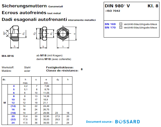 Nuts : Self-Locking Nuts - All-Steel Self-Locking Nut - All Steel Lock Nut, White Zinc Steel, DIN 980