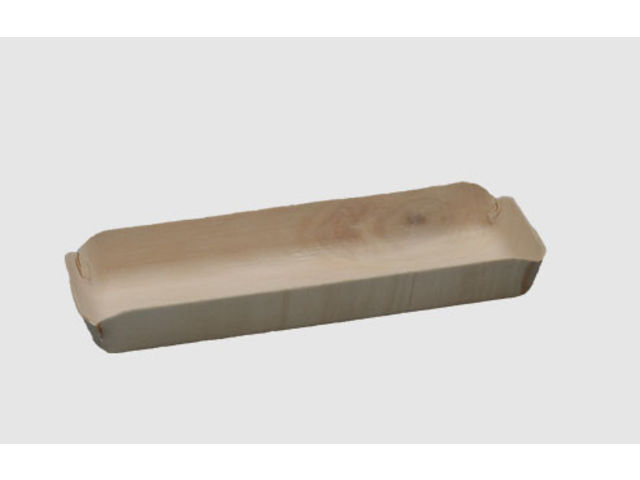 Oblong thermoformed wooden trays are available with or without parchment paper. There are perfect for packaging bread, pastry, vegetable, aromatic herb, cheese, chocolate, salting, ready meal, fish…