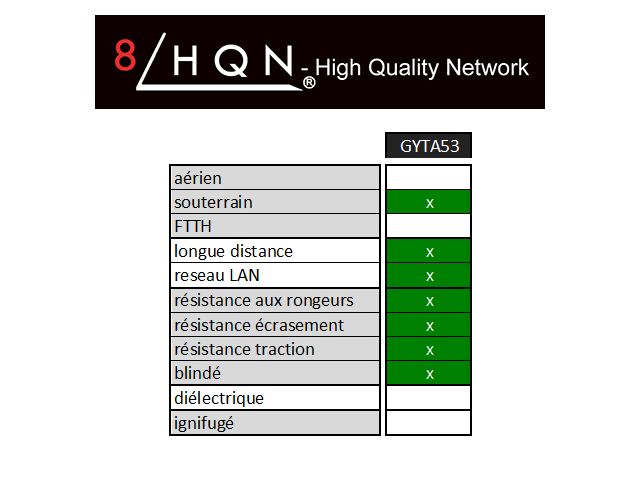 Optical fiber cable for underground installations - GYTA53 - produit présenté par 8HQN-High Quality Network - ACSSA Informatique