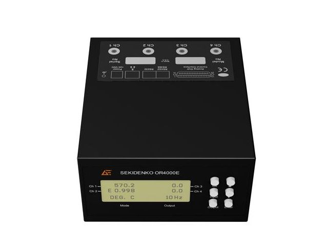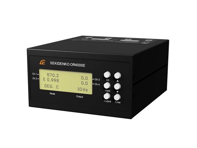 The Sekidenko OR4000E is a multi-channel, non-contact optical fiber temperature pyrometer that measures infrared energy emitted from an object and converts it into usable temperature data (degrees °F or °C).