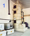 HANDTE absorption gas scrubbers are constructed in various sizes for exhaust air flow rates ranging from 800 to 120000 Bm³/h. They consist of a packed tower scrubber with a 1500mm tall absorption zone, an integrated scrubbing liquid tank and an immersion pump with dry-run protection and complete pipe fittings. The fan can be top mounted or installed as an auxiliary unit.