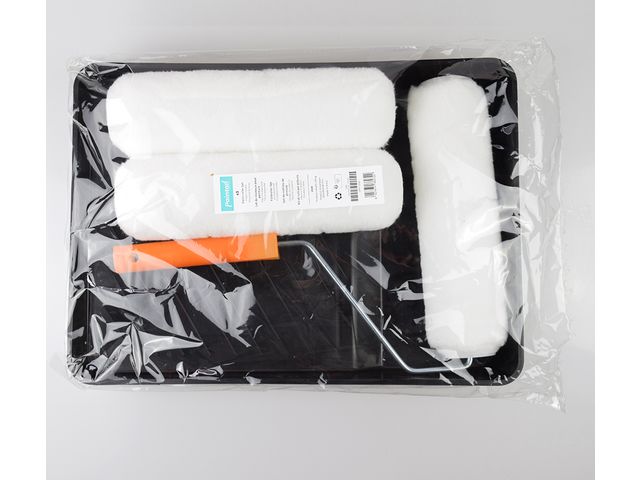 Paint roller Set - 5 Pieces - 3x230 mm roller cover, 1x230 mm roller frame, 1x230 mm plastic tray - Equipment and supplies for painting