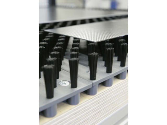 Due to the many possible bristle heights and bristle diameters it is suitable for a variety of applications. Short and relatively hard bristles for heavy components, soft bristles for very vulnerable surfaces, or high bristles for goods with fittings (i.e. furniture with hinges, bolts or handles).