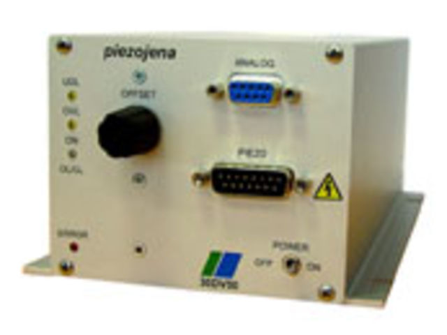The line of digital piezo amplifiers (d-Drive) of piezosystem jena is now expanded by the OEM amplifier module 30DV50. The 30DV50 was designed for universal use with a main supply voltage from 10V to 30V DC. The casing is available as a screw slot version (see picture) or for use in a 19-rack mount casing.