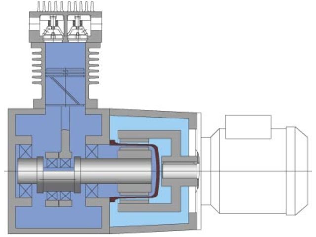 Piston air-end, lubricated, dual-stage, with special steel pipes for interstage air cooling. Inter-cooler and after-cooler on models from 30 to 35 bar delivery pressure.
