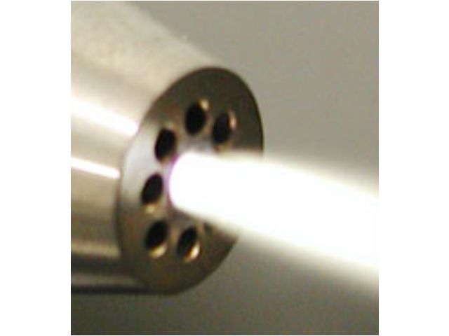 Plasmajet® (registered AFS trademark) is the name of our plasma-producing device, which operates at atmospheric pressure. The plasma is produced by passing a process gas through a high-voltage field, where it is blown out of the unit, producing a potential-free energy source which is used for surface modification. Applying the plasma to a plastic surface increases its wettability, metal surfaces can be cleaned, and welding of plastic materials is also possible.
