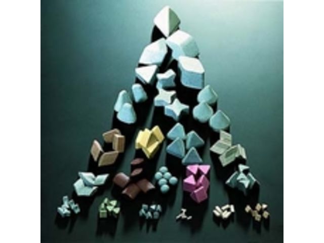 Plastic medias are generally used for a more gentle treatment of parts. The specific gravity, and therefore the bulk weight of plastic media, is almost half that of ceramic media. Our computer-controlled manufacturing process and the special curing treatment after de-molding, guarantees the consistent high quality of our media. This is the key to a repeatable process, which guarantees consistent finishes and therefore, the quality of our customers products.