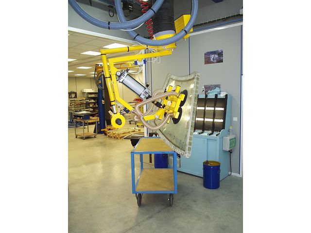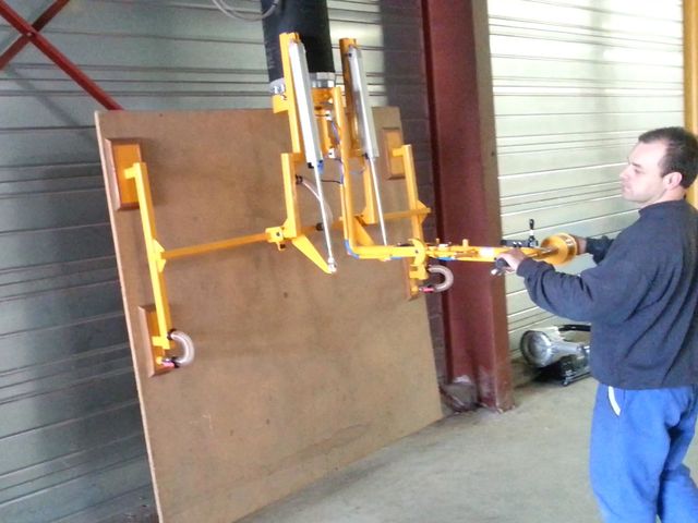 The MANUPAC pneumatic assisted handling system has been developed to simplify and optimize lifting and handling operations in industrial environments. By combining vacuum lifting technology with pneumatic assistance, it enables operators to easily handle heavy or bulky loads such as panels, doors, plasterboards or industrial components, while significantly reducing physical effort.