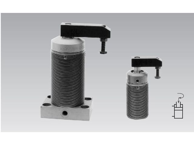 Pneumatic swing clamps are used for applications which require only low clamping forces. The installed magnetic piston allows monitoring of clamping and unclamping position.