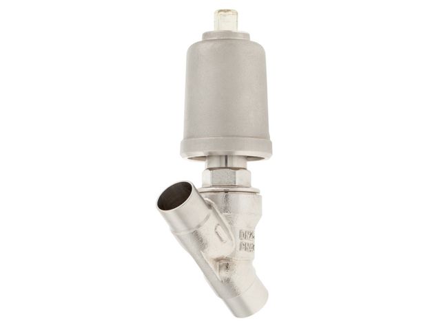 Pneumatically operated angle seat valve is the extremely reliable allrounder in valve technology and is predestined for very high switching capacities.In stainless steel design for neutral and aggressive media but also for a wide range of temperature applications suitable. The angled seat design offers a high flow rate.