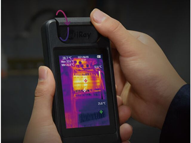 Infiray's P200 portable ergonomic thermography camera with 256x192 pixel resolution at 12µm pitch (VoX microbolometer sensor from NETD<40mK) brings unique ease-of-use to maintenance and inspection personnel.