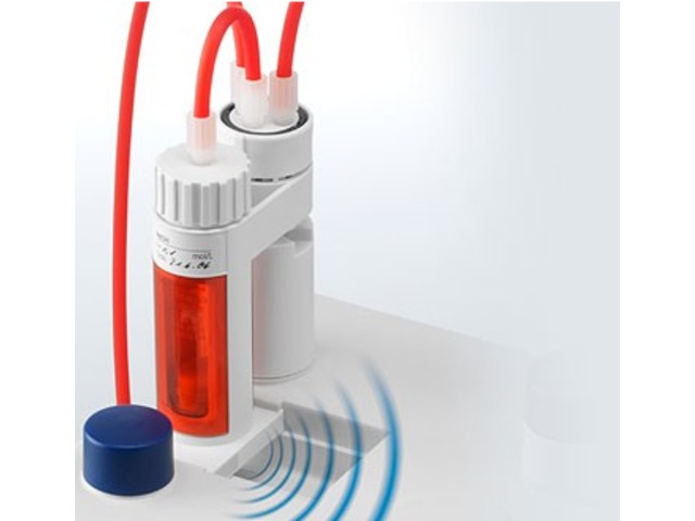 Contact with liquid chemicals should always be avoided. The Solvent Manager takes care of filling, draining and exchange of solvents. It is fully controlled by the titrator which offers One Click access to all tasks. LevelSens offers additional security by monitoring solution and preventing overflow in the waste bottle.