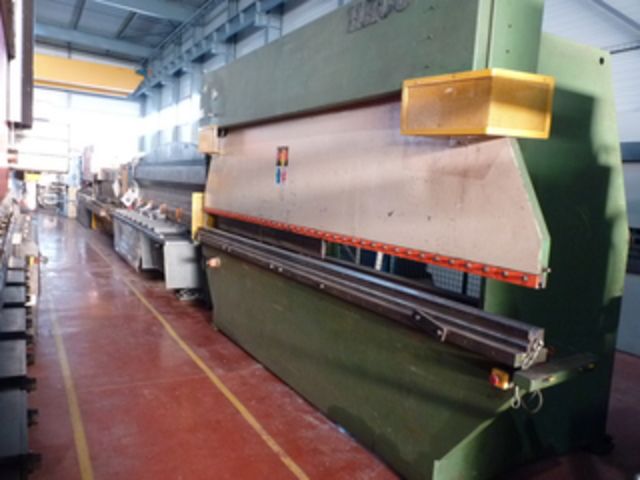 This press brake includes accessories such as the electric backgauge and a punch + die over 3 meters.
