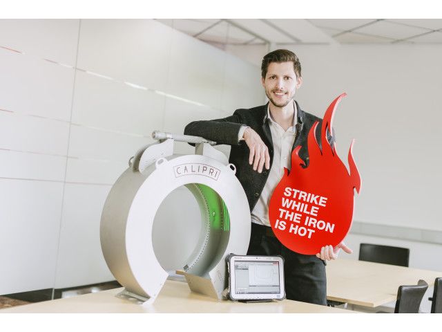 CALIPRI RC220 is a hand-held profile measuring instrument for high-precision sampling measurement of rolled products. With CALIPRI RC220, the cutting and cooling of samples for the evaluation of the contour is no longer necessary. The use of the optical profile measuring gauge thus speeds up the calibration of new rolled profiles. The system is mobile and can be moved quickly and easily from one rolling line to another. The measuring device can be placed between rolling stands by hand or by means of a guiding device and can measure the profile of the still hot product in a matter of seconds. The result is displayed as a point curve on the system's tablet PC and the profile can be evaluated using predefined measurement specifications and template profiles. When measuring with CALIPRI RC220, the sensor records the rolled profile from all sides and can thus evaluate both simple and complex profile shapes. After the measurement, the result can be exported as a report or data file.