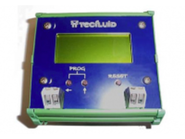 The electronic transmitters CP420R and CH420R are DIN rail modules designed to work with TECFLUID’s volumetric counters COVOL and turbines. The instruments are supplied already configured for the type of input. The circuit is based on a microprocessor that, in function of the pulses per liter programmed, calculates the flow rate and totalizes the volume that flows through the meter and shows these values on a local indicator. The CH420R differs from CP420R in that it is also HART protocol compatible.