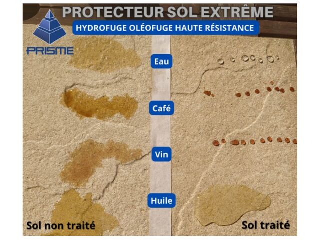 PROTECTEUR SOL EXTRÊME is an impregnation product, it is non-film-forming and therefore allows the surface to breathe while protecting it in an effective and lasting manner. Its beading effect considerably reinforces its water-repellent properties.