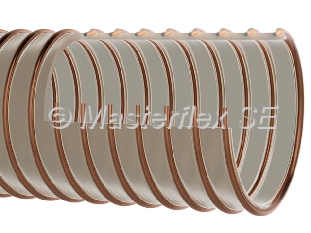 PU Suction hose & Transport Hose, extremely abrasion resistant, vacuum proof, seamless, very smooth inner lining, antistatic, surface resistance < 109 Ohm, microbe-resistant