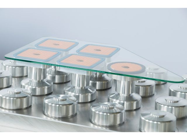 Vacuum clamping system for grinding glass workpieces using CNC machines from the manufacturer Bystronic.