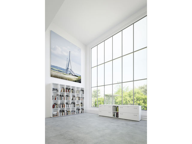 Practical, complete and sturdy, Quiétude cupboards and bookshelves are the ideal complement for filing and organising your daily work. A reliable storage range with wood or plain finish, with the same choice of finishes as the tables and desks. Quiétude adjusts to your office layout with various dimensions for your business needs.