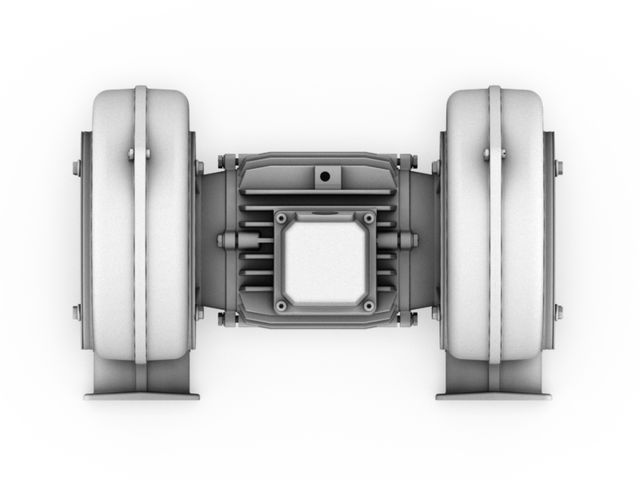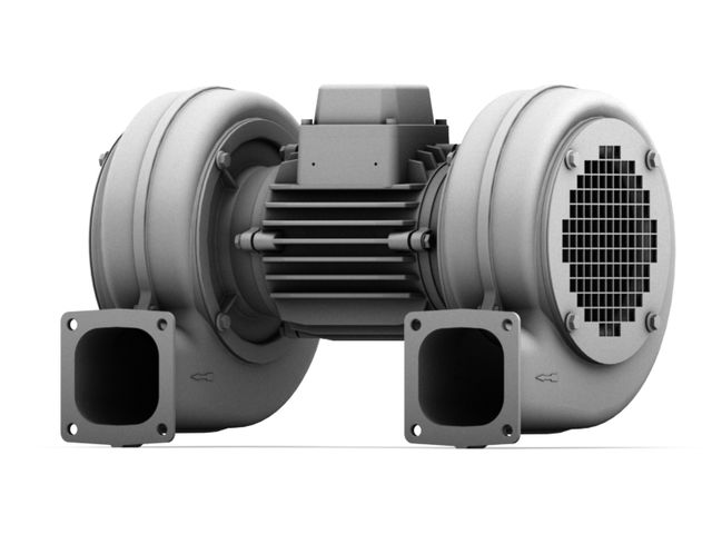 Up to 95 m³/min and 2,200 Pa. Housing made of cast aluminium, drum impellers bent forward and made of galvanized sheet steel, mostly corrosion-resistant.