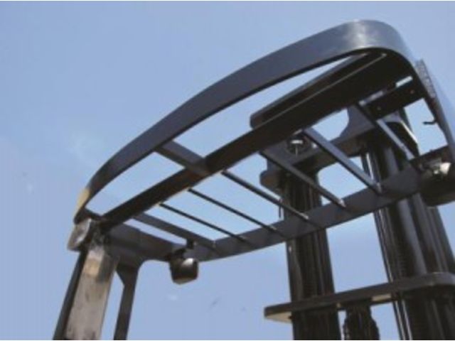 The optimized mast and overhead guard design provides a clear upward view to the forks.
