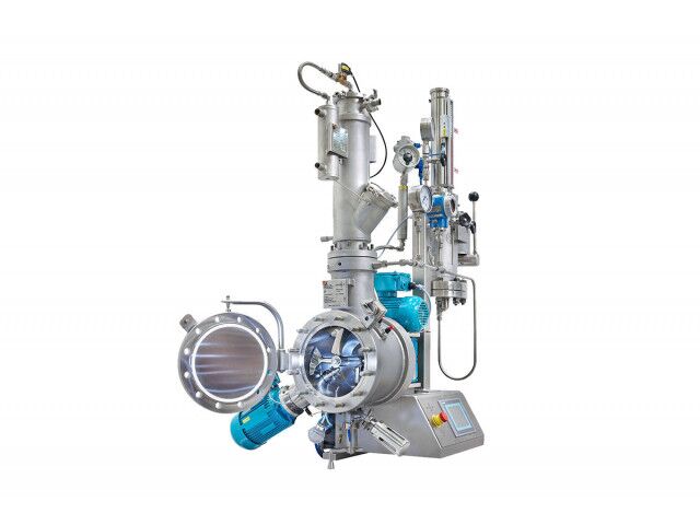 The high-speed mixing elements ensure high contact frequency of the reacting agents with each other and intense contact of the reacting agents with the heated or cooled vessel wall. This makes reactions in homogeneous and heterogeneous phases possible in practically all combinations (solid/liquid/gaseous). The production consistency can be anywhere along the spectrum of liquid to pasty to lumpy to pourable. High-speed rotating choppers installed on the side of the machine drum perform additional mixing work to distribute the reacting agents.