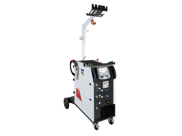 Motorized carriage makes it easy to move the table and arm for welding in flat, vertical or overhead positions