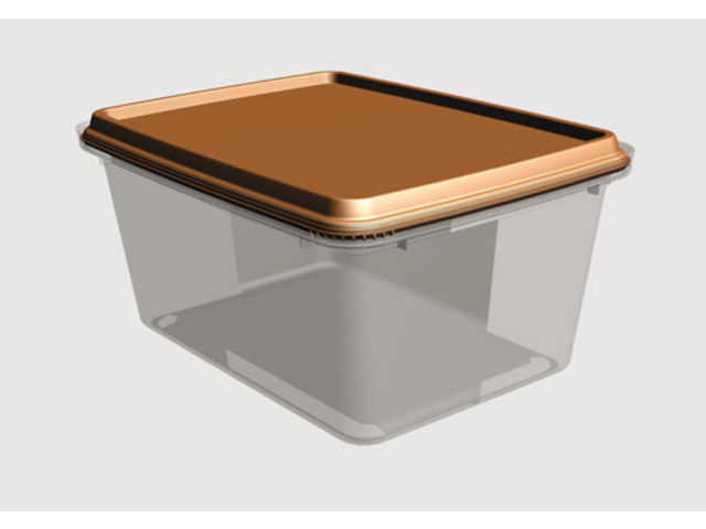Rectangular injected plastic box with a tamper evident closure for ice cream, butter, dairy product, fruit, vegetable, sauce, soft margarine, meat, deli…