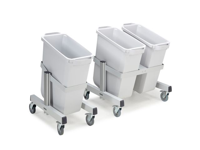The recycling trolleys are ideal for placing underneath or beside the packing bench. The bins are adjustable in angle for ease of use! The trolley comes with four swivel castors, two with brakes. Available in single and double version.
