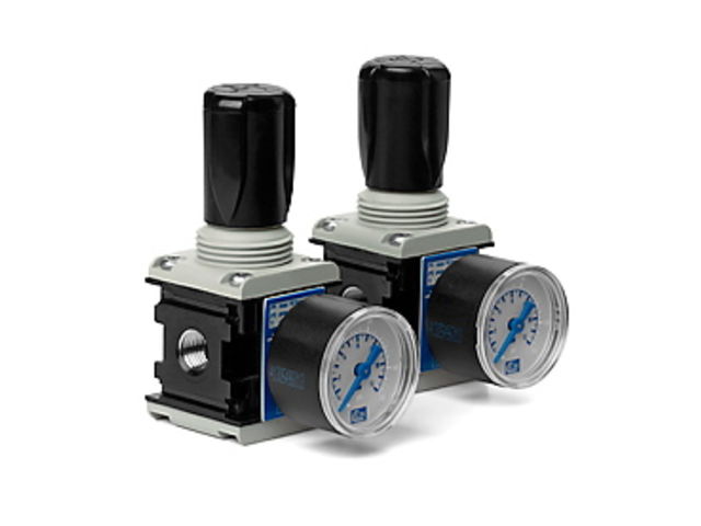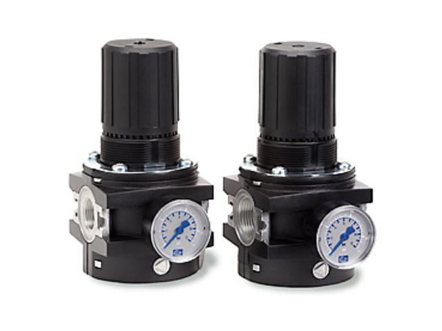 CEJN Regulators feature a locking device, a flexible rolling diaphragm, and a gauge. A mini-version with thread connections down to 1/8-inch is available for use when space is limited.