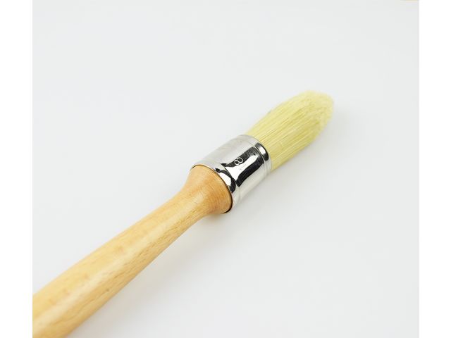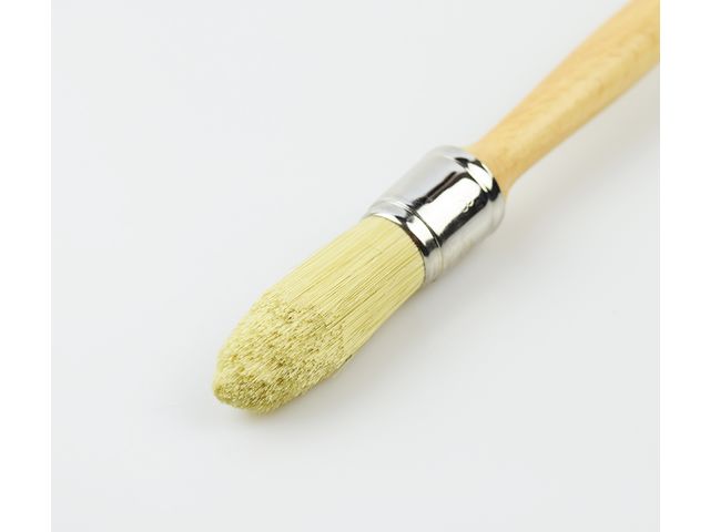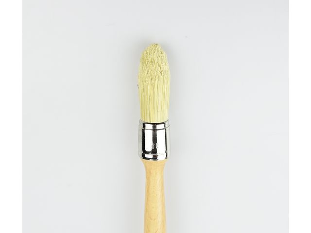 Ce pinceau à réchampir dispose d'une touffe ronde de 18mm de diamètre, composée de fibres moyennes en polyester et fibres naturelles. Son manche en bois vernis est long pour faciliter les travaux de précision dans les angles.