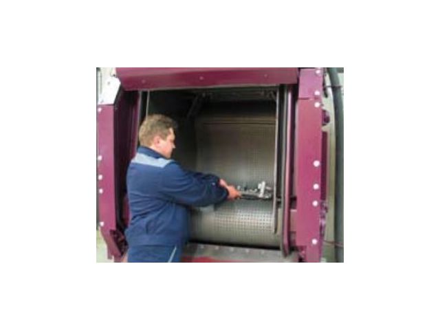 Machines of this kind can be filled and emptied in a variety of ways. These include an automated loading device and take-off conveyor, manual loading and unloading in semi-automatic mode, hoisting equipment or direct unloading into containers provided by the customer.