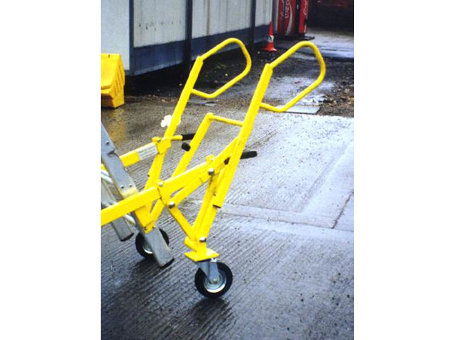 The safety mobile ladder is equipped with two retractable wheels and a draft bar (patented systems) which provide easy mobility. This system also acts as a safeguard as it prohibits the access to the top of the tank when the base of the structure is not blocked.