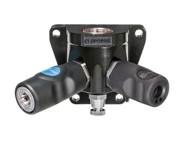 PrevoS1 quick safety couplings are available for most of the profiles used around the world such as ISO 6150 B (Blue button), ISO 6150 C (Black button), European 7.2-7.4 (Green button), ARO 210 (Yellow button), British (Orange Button) and Truflate (Red Button).