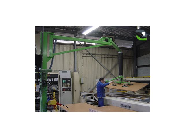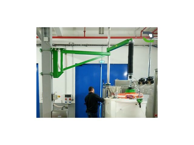 A Satellite jib has a swivel that enables it to articulate its two arms. It is therefore possible for loads to be handled in confined or hard-to-reach areas by bypassing obstacles. This jib model, designed and manufactured in France by Manut-LM, offers many advantages. The suction passes through the arms of the jib, which bypasses the installation of a flexible suction tube and the area covered by the manipulator is greater than that of a simple triangular jib installation.