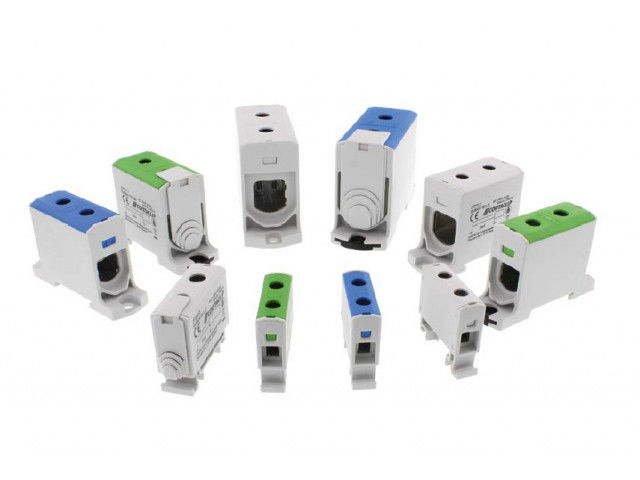 Screw-distributor blocks SVBKA | SVBA | SVB The screw-distribution blocks make it possible to distribute potential and power in a compact space without any additional accessories. The distribution blocks are suitable for aluminum and copper cables from 1.5 to 500 mm². They can be used in installation and distribution board construction and also in controller construction for machinery. The blocks SVBKA | SVBA | SVB are mounted by snapping them on to TS 35 DIN rails. They can also be attached directly to a mounting plate using the screw flange located on the side of the housing. The Advantages - Easy to work with - Space-saving design - High short-circuit resistance rating - Easy to align side-by-side with connection Clip (not for the SVBA 1100A) - Finger safety (according to IP20) is ensured by safety gate for each cross-section
