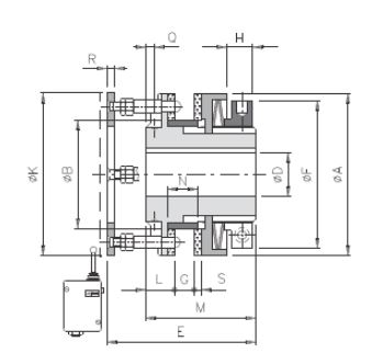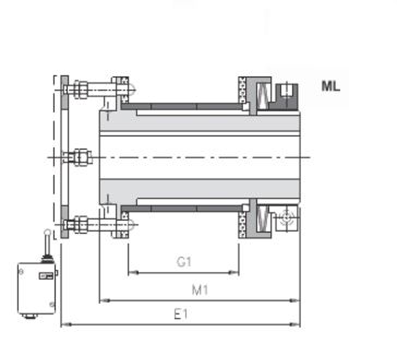 This model of torque limiter is available in long hub, spiral springs and friction rings with different compounds for use in special applications.