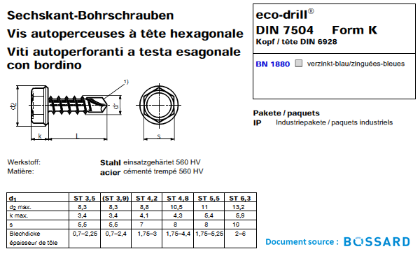 Self-tapping Screws : Self-drilling Screws - Hex Head - Self-drilling, Collar, Hex Head, White Zinc Steel, DIN 7504K