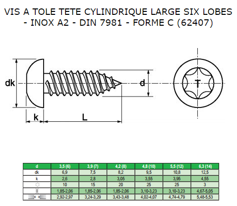Sheet Metal Screws : Large Round Button Head, Torx - Torx Pan Button Head Sheet Metal Screw, A2 Stainless Steel, ISO 14585C
