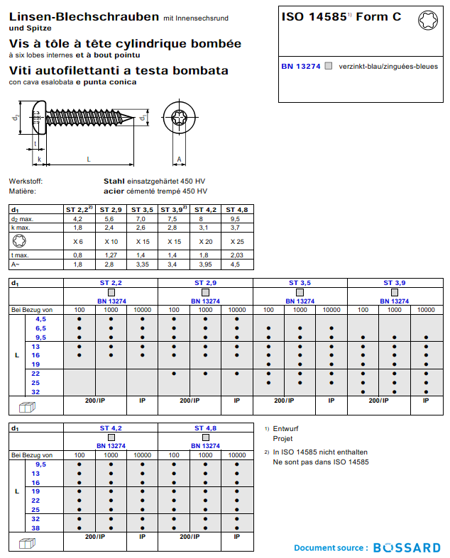 Sheet Metal Screws : Large Round Button Head, Torx - Torx Pan Button Head Sheet Metal Screw, White Zinc Steel, ISO 14585C