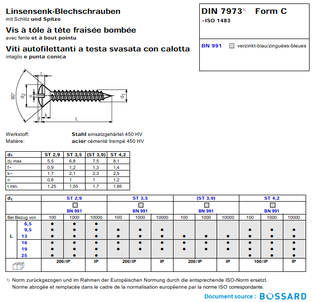 Sheet Metal Screws : Slotted Raised Countersunk Head - Slotted Raised Countersunk Head Sheet Metal Screw, White Zinc Steel, DIN 7973