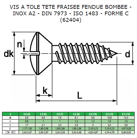 Sheet Metal Screws : Slotted Raised Countersunk Head - Slotted Raised Countersunk Head Sheet Metal Screw, A2 Stainless Steel, DIN 7973